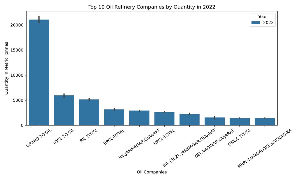 Note: only Jan and Feb data is available for 2023 and you can see the substantially higher amount of crude oil which has been refined so far.
